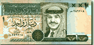 The Jordanian Currency is the Jordanian Dinar, or JD. It is subdivided into 1000 fils, or 100 qirsh or piasters. It appears in paper notes of 20, 10, 5, 1, and 0.5 JD denominations. Coins come in denominations of 1 JD, 500 fils, 250 fils, 100 fils, 50 fils, 10 and 5 fils. The daily exchange rate is published in local newspapers. The following exchange rates are as of October 1998. |